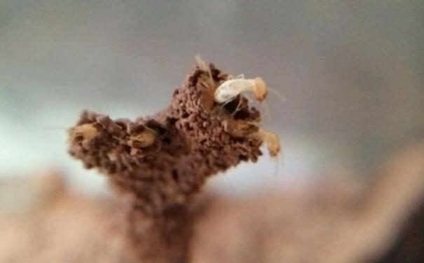 2.家白蟻(乳白蟻):其可在房屋建筑上的隱蔽部位或地下構(gòu)建復雜的蟻巢,群體大、數(shù)量多也較集中,對房屋的破壞力極大。他們可危害房屋的底層,也可上升到幾十層樓高的建筑進行危害,通常在外表爬過的地方構(gòu)筑泥道,常稱:“蟻路”。一般在每年5—6月份天氣悶熱的黃昏或近夜晚,長翅繁殖蟻從巢群中分飛出來,以建立新的小家庭。