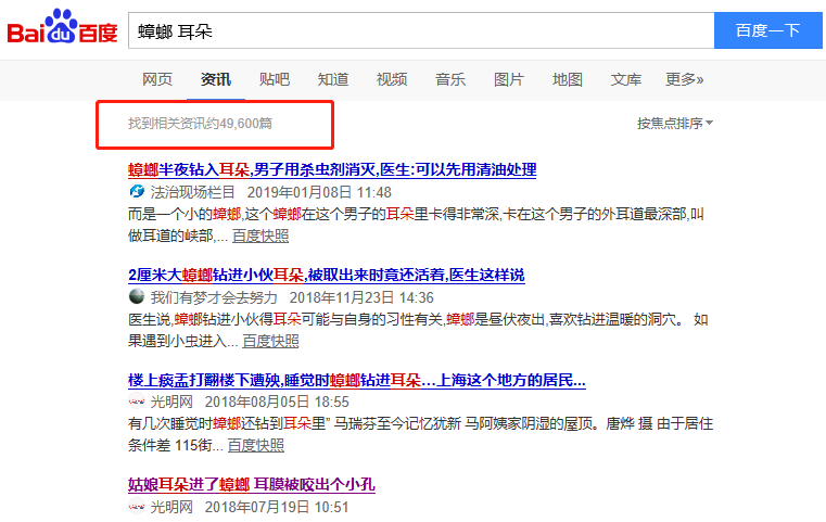 這種事情年年有,中國(guó)有,美國(guó)有,澳洲有,深圳有,上海也有,反正有蟑螂的地方,就會(huì)有蟑螂爬進(jìn)某美女耳朵的故事,百度一下“蟑螂 耳朵”,結(jié)果是這樣的
